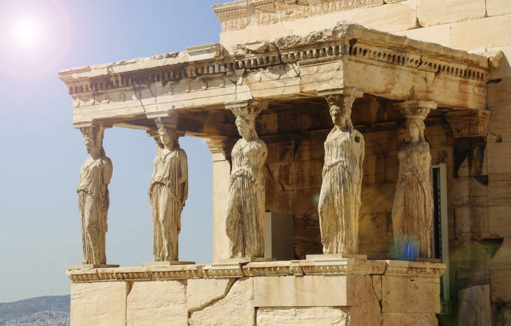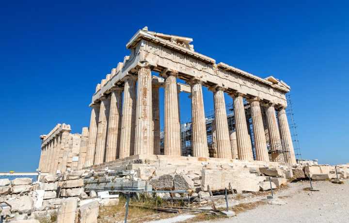 Парфенон — доминанта храмового ансамбля Афинского Акрополя — был заложен в начале V века до н. э. Храм кажется воплощением гармоничности и строгости линий. Скульптурным оформлением руководил Фидий — автор центральной статуи Парфенона Афины-Девы.
