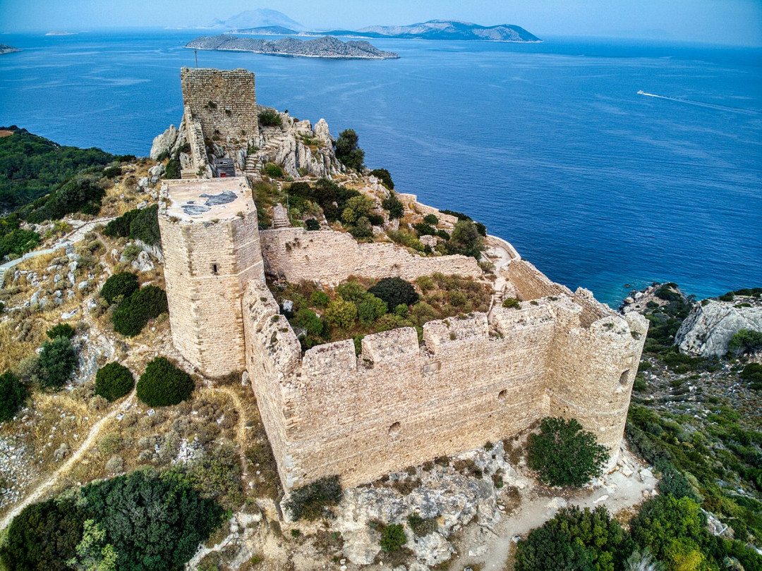 Архангелос — небольшой древний городок на восточном побережье Родоса, стоящий в окружении оливковых, лимонных и апельсиновых рощ. В XV веке владевшие этими местами рыцари Ордена Святого Иоанна возвели на одном из холмов замок Архангелос, чтобы защитить поселение от турецких набегов. До наших дней от древнего фортификационного сооружения уцелели только полуразрушенные внешние стены, круглая башня, фрагменты квадратной башни и восстановленный после итальянской оккупации храм Святого Георгия.