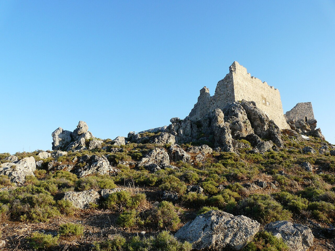 Руины замка Критиния расположены близ одноимённой деревни на западном побережье Родоса. В XV веке для защиты от турок рыцари-госпитальеры построили крепость, выбрав для неё стратегически удачное место на вершине холма. С высоты 130 м хорошо просматриваются прибрежные районы и просторы Эгейского моря с соседними островами. В XVI столетии замок дважды модернизировали. С тех пор он не подвергался реставрации — проекты восстановления исторического памятника были разработаны, но так и остались на бумаге. До наших дней уцелели фрагменты стен с полуразрушенными башнями, остатки редутов и церкви Святого Павла. К руинам ведёт крутая дорожка с которой открываются восхитительные виды окрестностей.
