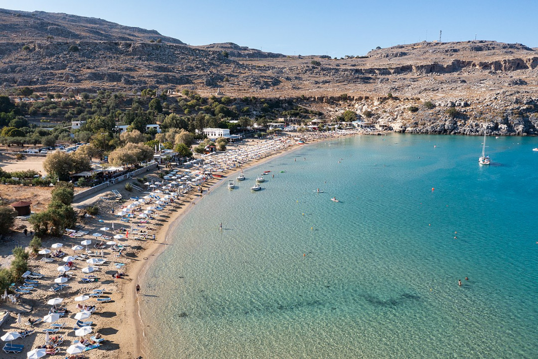 Пляж Линдос находится в одноимённом поселении, основанном дорийцами VII веке до нашей эры. Курорт очень популярен среди туристов, имеет развитую инфраструктуру, богат историческими памятниками и красивой природой. Тихий песчаный пляж, удостоенный Голубого флага, подходит для отдыха с детьми. Неглубокие воды залива хорошо прогреваются, заход в море плавный и безопасный. В пункте проката можно взять снаряжение для снорклинга, арендовать катамаран или лодку, чтобы добраться до соседней живописной бухты Святого Павла. В разных частях пляжа обустроены спортивные и детские площадки. Вдоль берега работают таверны, где подают настоящую греческую еду.