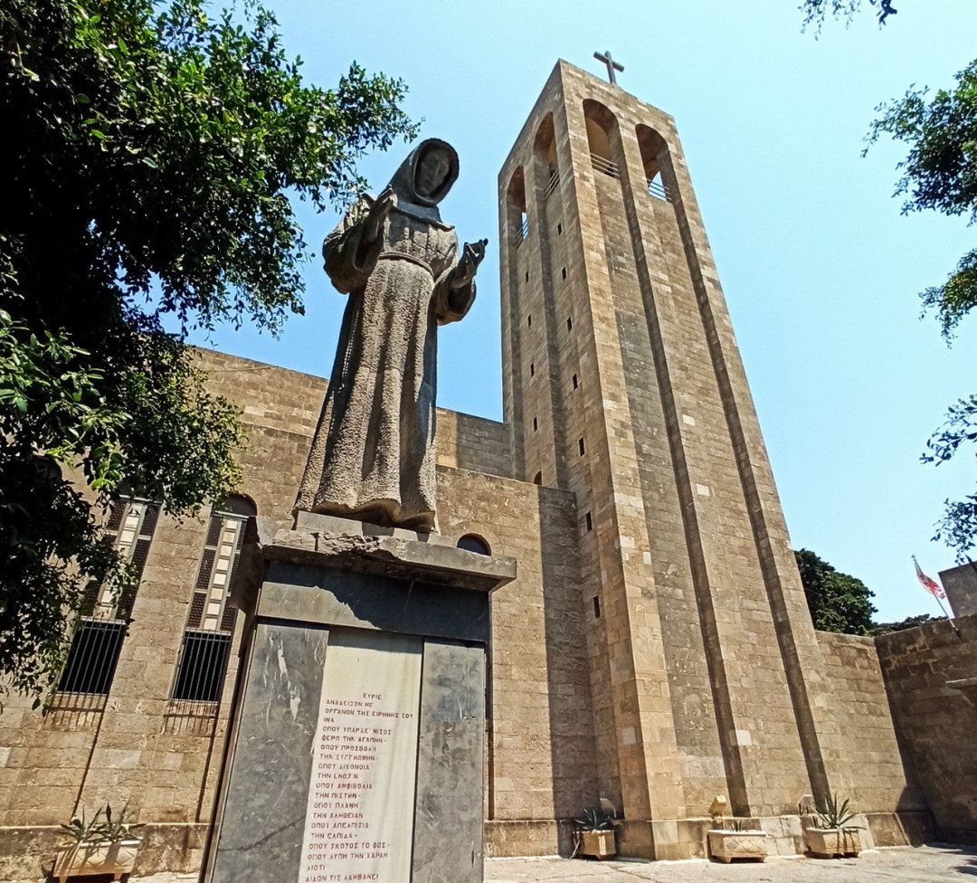 Кафедральный собор Святого Франциска Ассизского — главный римско-католический храм архиепархии Родоса. Его построили в 1939 году. Спустя год установили орган и 14 барельефов работы скульптора Монтелеоне с изображением Крестных Стояний. Стены хора и боковые алтари украшают росписи и картины художника Пьетро Гауденци. Перед собором на постаменте возвышается статуя Святого Франциска.