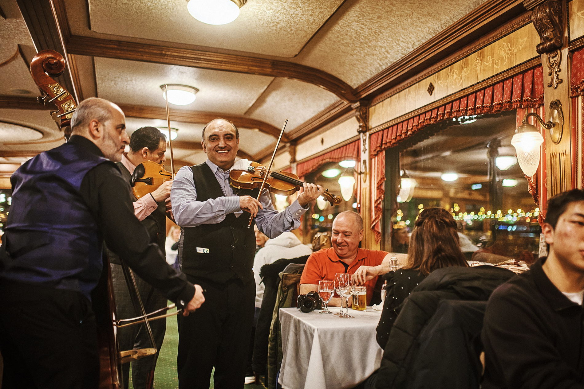 Экскурсия мне понравилась, все произошло так, как было заявлено. Музыка, шведский стол с национальными блюдами. Конечно, подобные экскурсии в Москве предполагают обслуживание официантов, и это удобнее. Но шведский стол заявлен изначально и блюда оговорены, поэтому чудес ждать не стоит. Посадили у окна, хотя мы не доплачивплм за это. Обслуживание хорошее, все вежливо. Музыканты мне понравились. Как развлечение в поездке, рекомендую.