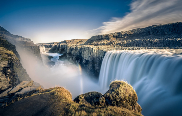 Кульминацией путешествия станет Золотой водопад — один из самых известных природных объектов Исландии, который расположился на обрыве горной гряды и образован двумя каскадами. Пройдя по тропинке сквозь водяное облако, мы окажемся на естественной смотровой площадке Гюдльфосса. Здесь вам предстоит прочувствовать всю титаническую мощь и красоту стихии, наблюдая, как поток лазурно-голубой воды бежит с оглушительным ревом по горному хребту и срывается с 32-метровой высоты.