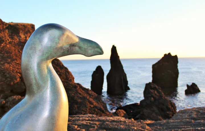 От стихии огня мы отправимся к стихии воды: дорога приведет вас к Бримкетилл — удивительно живописному природному бассейну, который волны Атлантики вырезали в мягкой лавовой породе. По легенде это место выбрали для купания сами исландские тролли. Купаться в Бримкетилл опасно из-за океанического прибоя — зато снимки получаются превосходные! После мы переместимся на пляж к памятнику исчезнувшей птице — белокрылой гагарке. На прибрежных скалах летом вы увидите гнездующиеся шумные колонии северной олуши, а иногда, если повезет, с берега можно увидеть спины китов, проплывающих недалеко от берега.