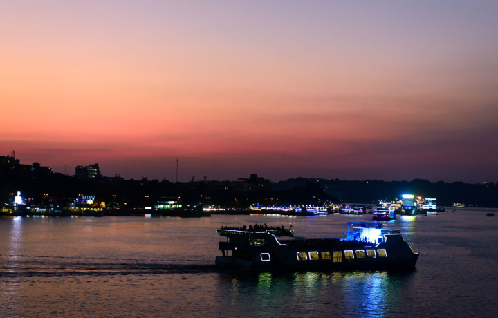 Проведите незабываемый вечер на реке Мандови, любуясь панорамами Панаджи и закатом над водой.