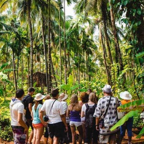 Здесь показывают, как растут кардамон, перец, корица, мускат и куркума, рассказывают о свойствах и применении в карри и масала-чае. Обед — формат «шведский стол» с гоанскими блюдами. По желанию — дегустация фени (кешью или кокос). В магазинчике при плантации можно взять чай, кофе, масла и натуральную косметику.