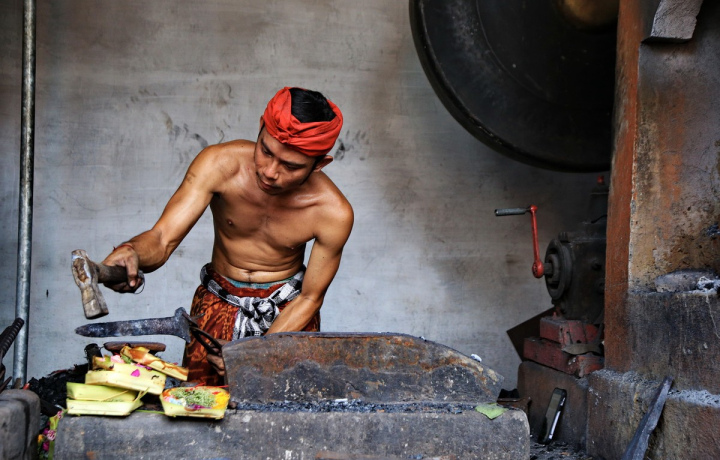 Назначенные даты экскурсии неслучайны. Это особые благоприятные дни, когда изготавливают предметы для церемоний. По специальному согласованию с мастерами вы увидите, как куётся крис (кинжал) и как в пламени искр отбивают раскалённый гонг. Также мы заедем к мастерам-кукольникам, которые вырезают из буйволиной шкуры магические куклы для театра теней и маски топенг, чьи персонажи способны вселять в себя духов. А на обратном пути посетим храм для очищения и благословения. Кроме нас, на церемонии не будет ни одного «буле», как балийцы называют иностранцев.