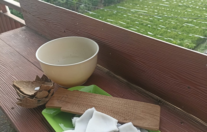 Шел ливень, но мы добрались! И это было не зря. Нас ждал теплый прием, интересный МК (хотелось раз и навсегда узнать как это делается, тк кокосовое масло тут делается в каждом доме). Мк по кокосовому масло дополнилось интересными фактами из жизни балийца. Ваян не оставляла ни один вопрос открытым) благодарю вас за эту прекрасную встречу, рекомендую каждому: легко, красиво, интересно. Еще уносиль с собой не только приятные воспоминания, но и что-то физическое-сделанное своими ручками масло.
