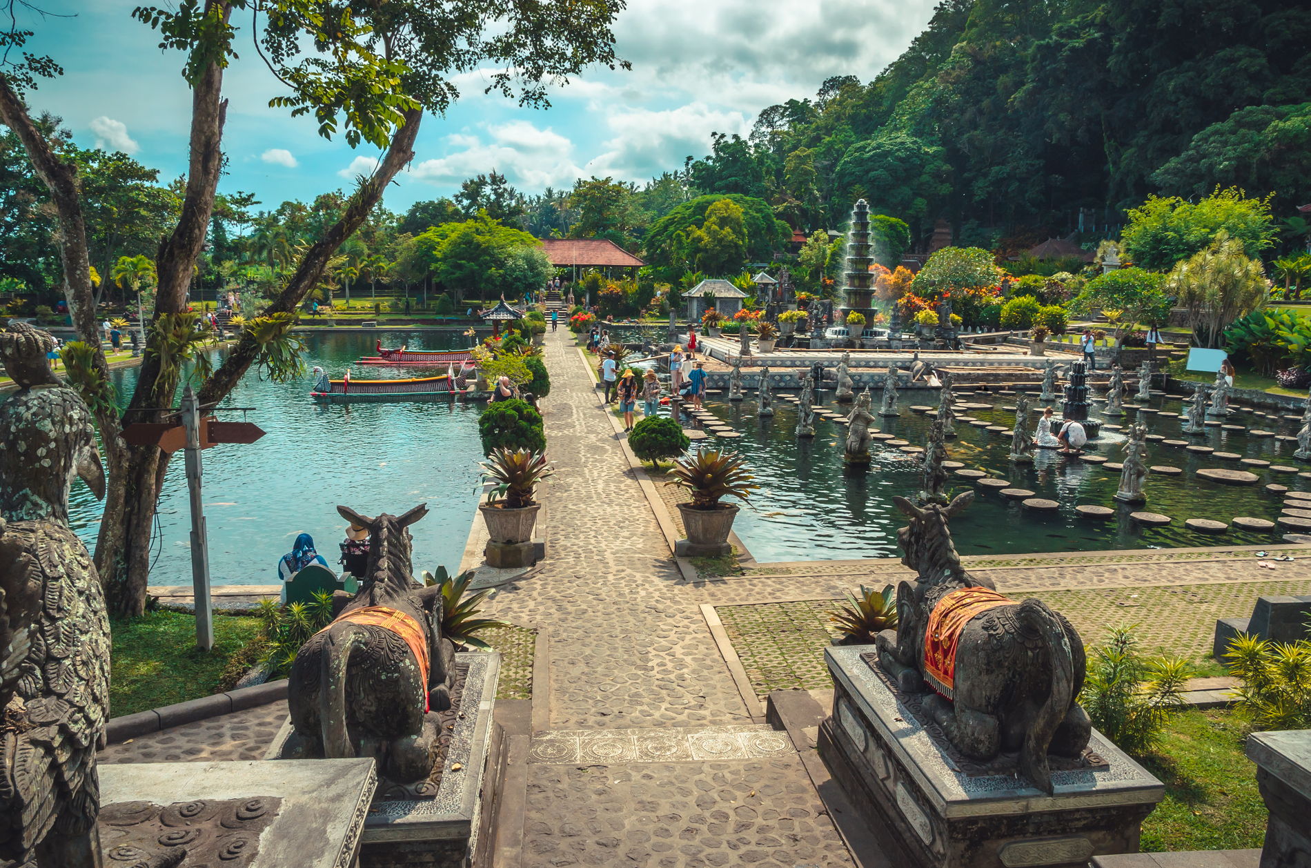 Парк Таман Дедари создает волшебную атмосферу благодаря скульптурам небесных нимф, вдохновленным древними легендами. Продуманная ландшафтная композиция гармонично сочетает искусство и природу, предлагая посетителям умиротворяющую прогулку вдоль берега реки Аюнг среди изящных каменных изваяний.