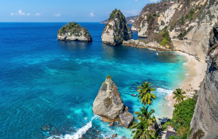 Во второй половине дня вы отправитесь исследовать западное побережье. Вы увидите природный бассейн Энджелс Билабонг с его бирюзовой водой, впечатляющий скальный амфитеатр Брокен Бич и, наконец, культовый пляж Келинкинг, чья форма с высоты напоминает спину динозавра. Этот пляж по праву считается одним из самых красивых в Индонезии.