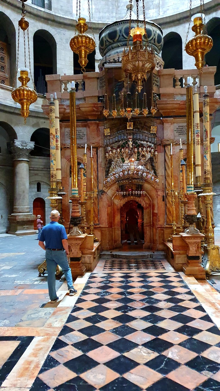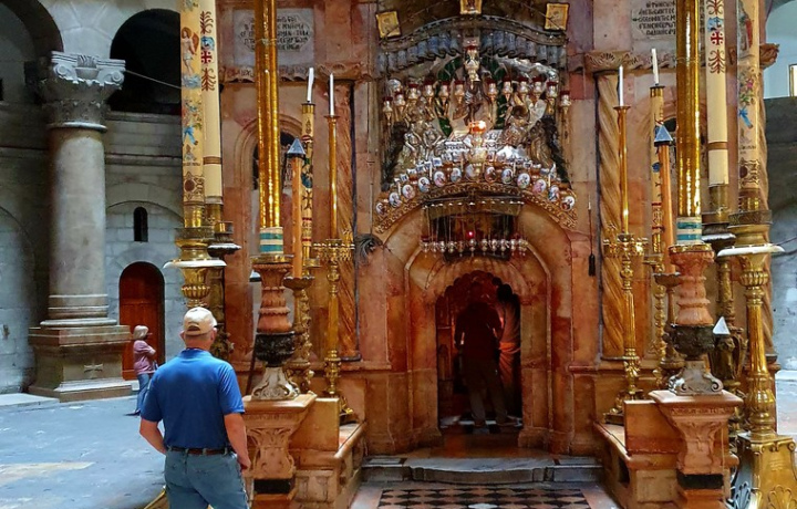 Вы узнаете, почему апсида первого Храма, построенного Константином Великим, была обращена не на восток, как обычно принято в церквях, а на запад. Мы поднимемся на Голгофу, где я вам расскажу, почему по традиции считается, что под Голгофой похоронены кости Адама и каким образом они туда попали. Вы сможете прикоснуться к Камню Миропомазания и освятить вещи, а так же обжечь свечи от Благодатного огня, который снисходит в Пасху в Кувуклие. И, разумеется, вы зайдете в саму Усыпальницу, ибо это цель каждого паломника на Святой Земле!