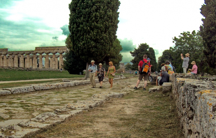 Город был окружен стенами, толщиной в 6 метров, 5 километров в периметре. Издалека видны огромные храмы, которые не хочется называть “руинами”, такие в них величие и сила! В 274 году до н.э. римляне завоевали Посейдонию, с тех пор этот город называется Пестум.