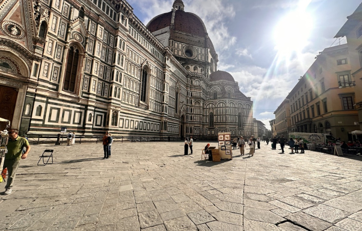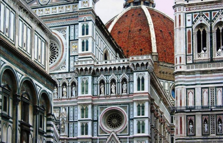 Кафедральный собор Санта-Мария-дель-Фьоре (Дуомо) возводился с 1296 по 1436 год. В его облике гармонично объединена стилистика поздней готики и раннего ренессанса. В XV веке храм был крупнейшей христианской церковью в Европе. Венчающий строение огромный купол виден из любой точки города. У основания его мраморного фонаря — кольцевой балкон, откуда открываются виды на исторический центр города.