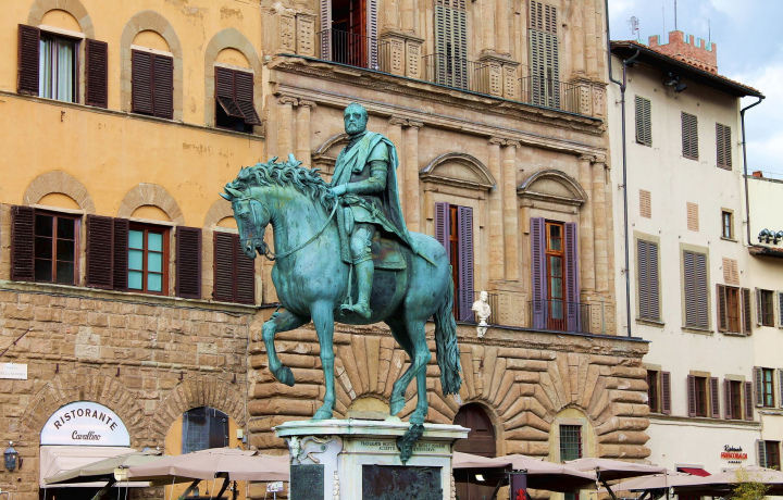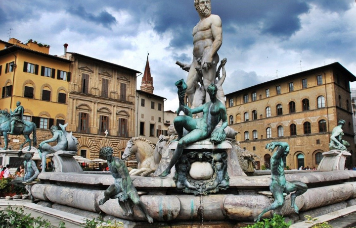 Площадь Синьории — многовековой центр политической жизни Флоренции. Над её пространством доминирует Палаццо Веккьо с 94-метровой башней Арнольфо. У дворца установлен конный памятник герцогу Тосканы Козимо I Медичи работы Джамболоньи.