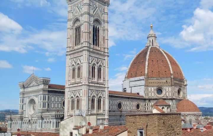 Кафедральный собор Санта-Мария-дель-Фьоре (Дуомо) возводился с 1296 по 1436 год. В его облике гармонично объединена стилистика поздней готики и раннего ренессанса. В XV веке храм был крупнейшей христианской церковью в Европе. Венчающий строение огромный купол виден из любой точки города. У основания его мраморного фонаря — кольцевой балкон, откуда открываются виды на исторический центр города.