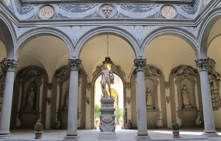 Затем мы задержимся перед Палаццо Медичи, где Лоренцо Великолепный приветствовал юного Микеланджело и где скульптор усвоил постулаты неоплатонической философии, которые отразились в его произведениях.