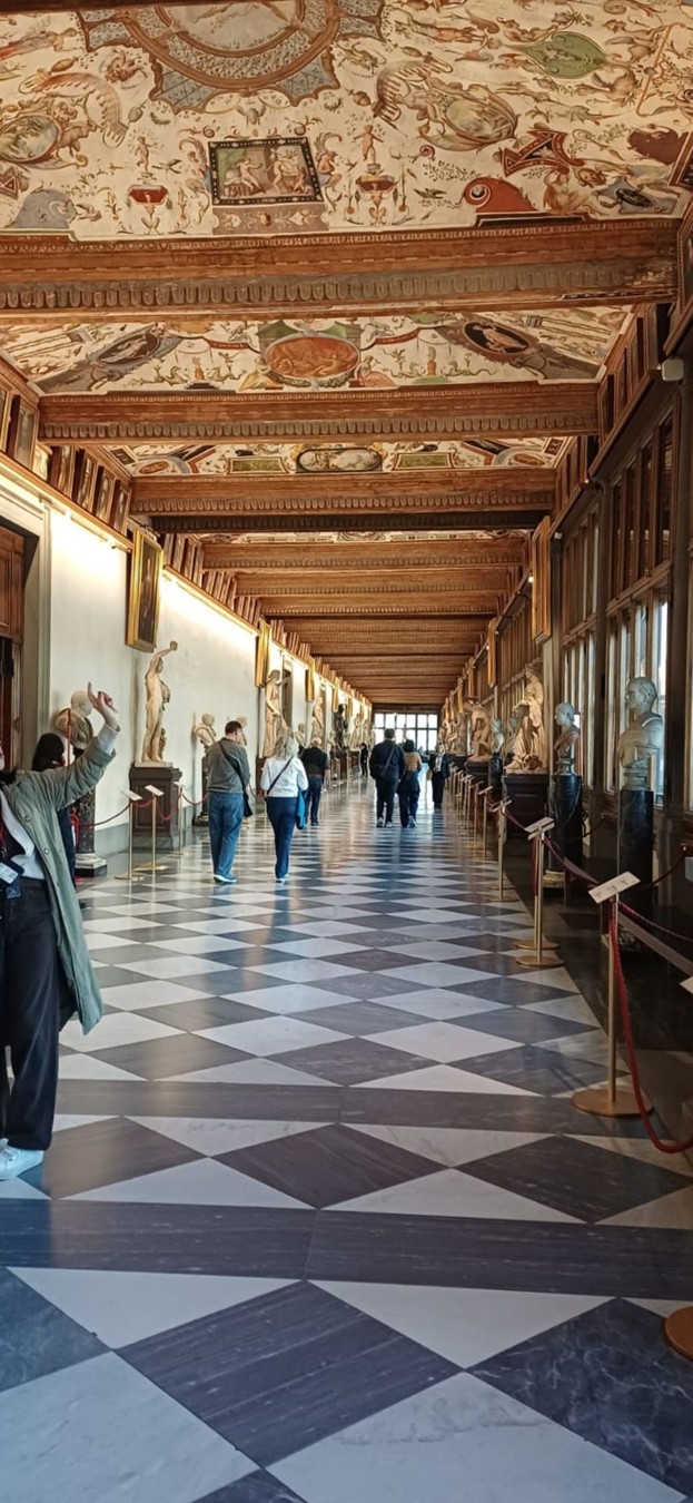 С первых минут в главном музее Флоренции мы погрузимся в историю развития живописи, скульптуры и моды на примере экспонатов галереи. Экскурсия пройдёт по принципу, которому подчинена экспозиция, — хронология и школы. Сначала мы поговорим об особенностях религиозной живописи 13 века, логично перейдём к светским сюжетам Ренессанса и в конце увидим полотна 17 века. Вы разберётесь в стилях: от готики до барокко, отличите греческие изваяния от римских и «прочитаете» сюжеты картин.