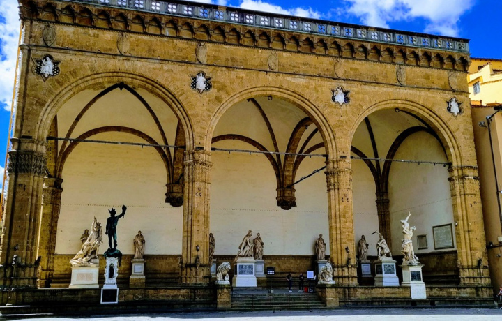 Поговорим и о самой площади, которая является настоящим музеем под открытым небом. Вы полюбуетесь оригиналами и копиями знаменитых статуй: Фонтан Нептуна Бартоломео Амманати, копия Давида Микеланджело, копия Юдифи и Олоферна Донателло, Персей Челлини и т.д. — и раскроете их символическое значение.