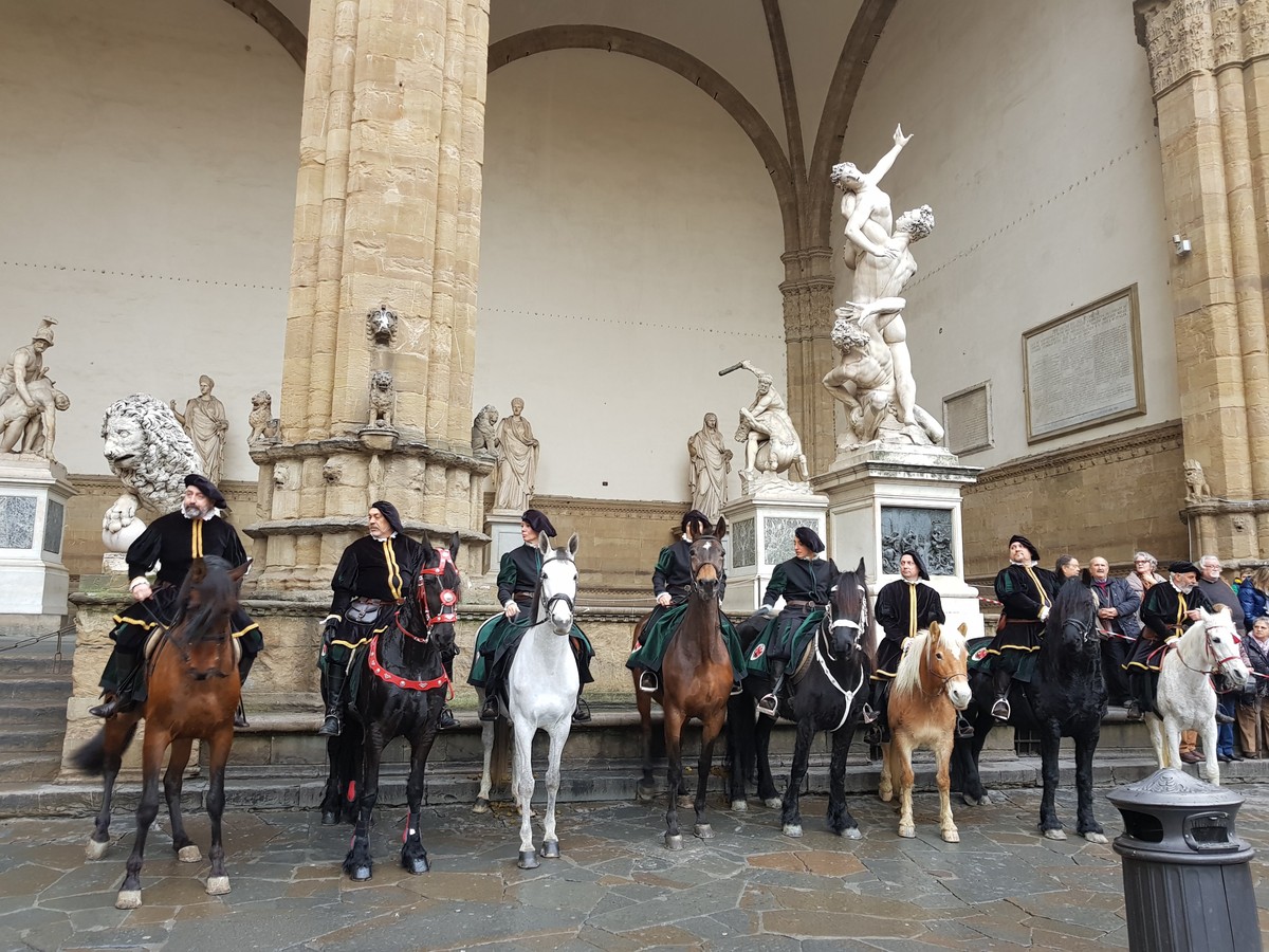Мы начнем экскурсию на площади Синьории — политическом сердце города со времен Средневековья. Я расскажу о том, кто правил Флоренцией до Медичи. Объясню, кто такие приоры и враждовавшие между собой гвельфы и гибеллины. Вы узнаете другого Данте — влиятельного политика и правителя — и услышите о Джироламо Савонароле, о сожжении которого напоминает здесь мраморная плита.
