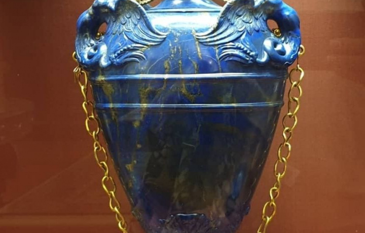 • Знаменитая ваза из ляпис-лазури, небесного камня, известного с глубокой древности, достойного императорских дворцов и картин величайших художников. Ваза изготовлена по эскизу Бернардо Буонталенти