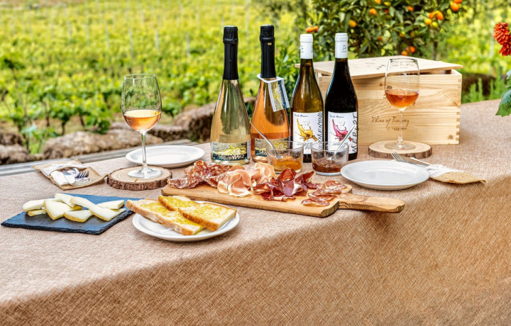 Вас ожидают 4-5 видов вина из благородных французских сортов винограда Пино Нуар, Мерло, Шардоне, Траминер и местных Санджовезе и Верментино. А также лёгкие закуски: сыровяленые деликатесы, сыр, традиционные тосканские кростини с оливковым маслом и разнообразные соусы.