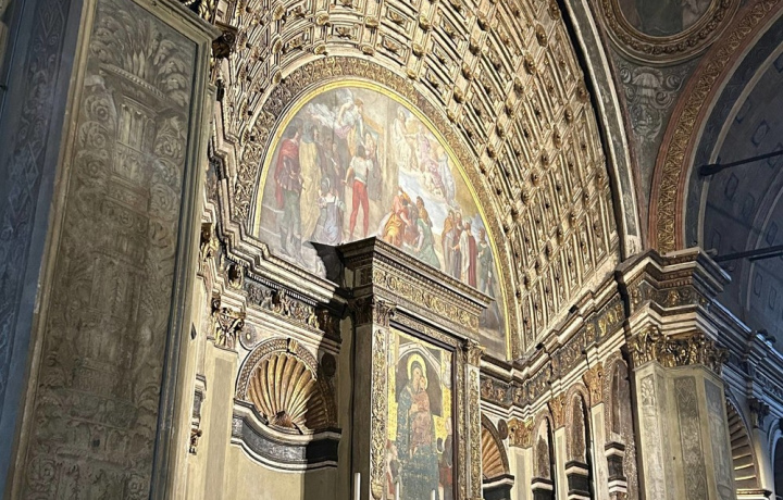 Церковь Санта-Мария-прессо-Сан-Сатиро — памятник Высокого Возрождения, выстроенный по проекту Донато Браманте. Один из первых примеров иллюзорных обманок в ренессансном зодчестве.