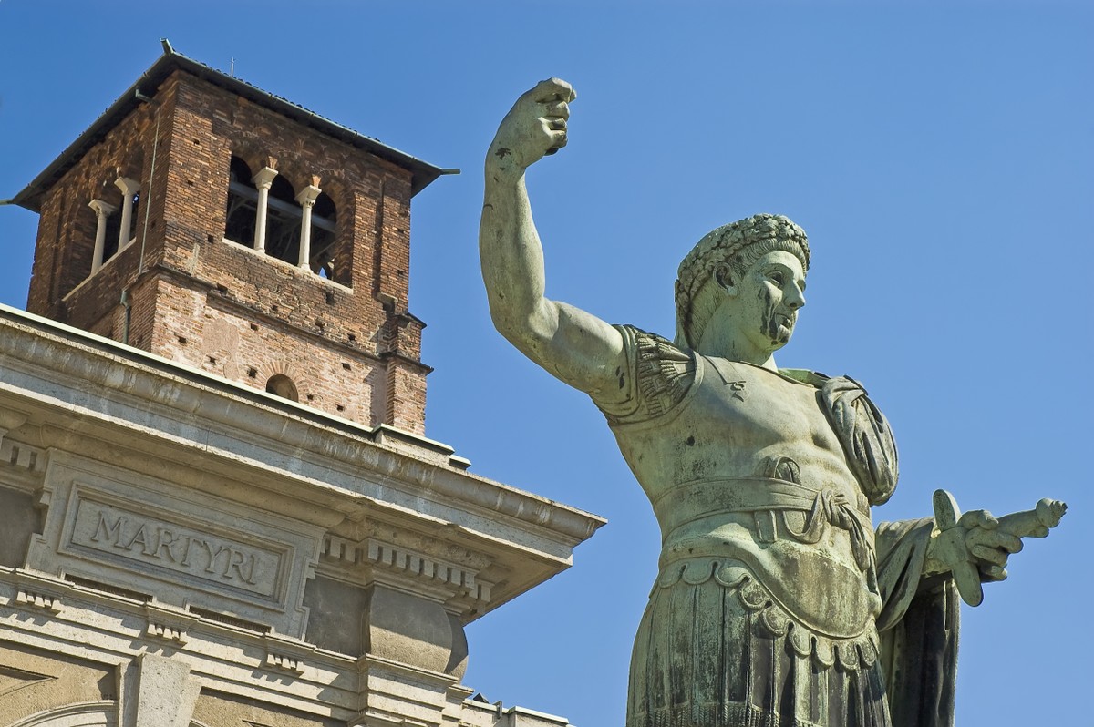 Средневековые ворота Порта Тичинезе и античная колоннада Сан-Лоренцо из остатков языческих храмов.