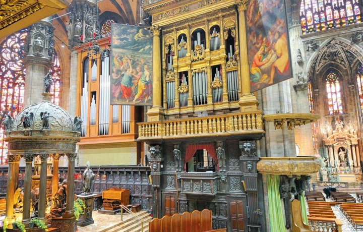 Вы отправитесь на исследование поразительного Миланского собора, который возвышается в центре города. Вы увидите не только фасад здания в стиле пламенеющей готики, но и заглянете в каждый уголок внутреннего убранства. Вы увидите знаменитые квадрони Борромео XVII века, статую Святого Варфоломея и многое другое. По предварительной договоренности экскурсовод может показать вам подвалы и крышу собора.