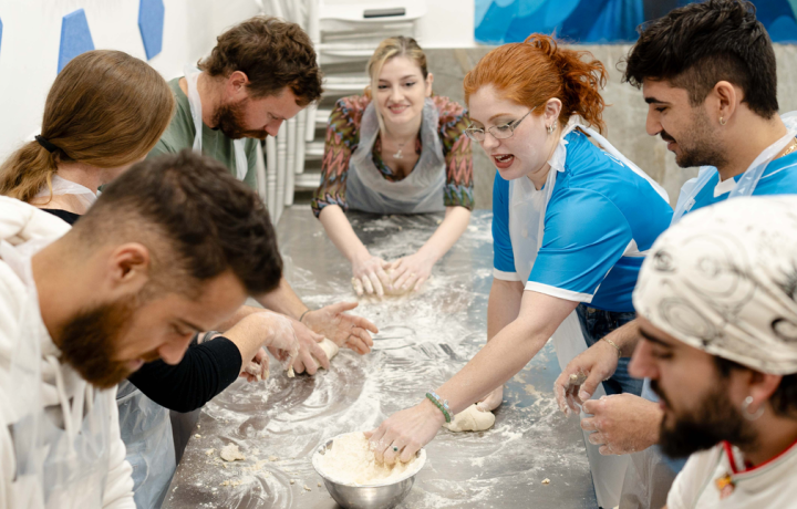 Добро пожаловать на кухню настоящей пиццерии! Покажем, как вручную формируют основу, как работает дровяная печь и почему пиццу нужно повернуть несколько раз. Под нашим чутким руководством вы сами сделаете классическую пиццу — и съедите её в весёлой компании. А ещё узнаете, откуда вообще взялась «Маргарита» и как она стала частью культуры Неаполя.