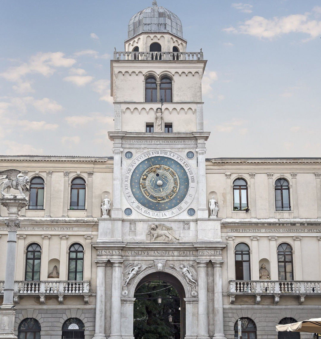 На площади Пьяцца дей Синьори стоит Башня с часами — один из символов Падуи. Кажется, что она встроена в здание Адмиралтейства, на самом деле Башня построена в 1347 году — на 100 лет раньше, чем дворец.