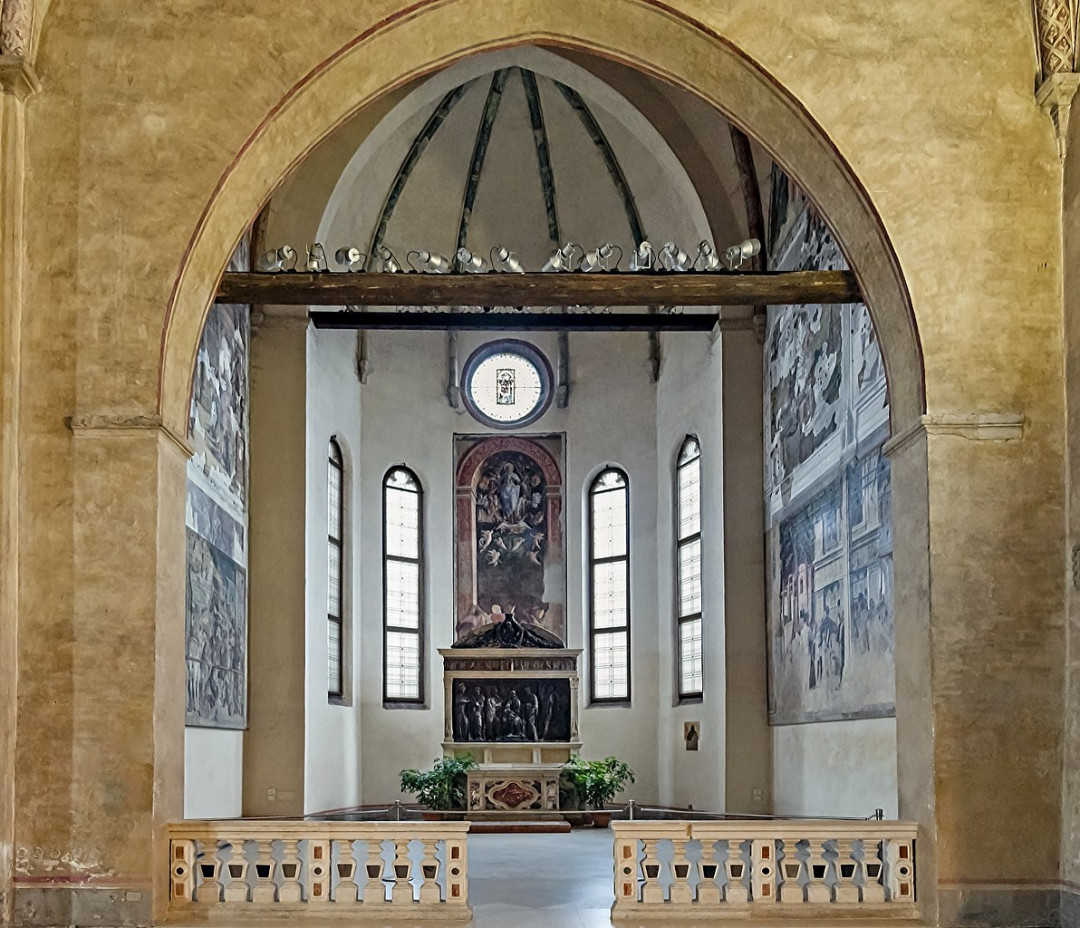 По всему периметру здания проходят 2-ярусные арочные галереи, скрывающие за собой единственный огромный зал. Крыша имеет форму перевёрнутого корпуса корабля и не поддерживается изнутри колоннами. Стены зала и потолок украшают 333 восстановленные фрески XIV века работы Джотто и других мастеров того времени. В зале палаццо установлены солнечные часы и маятник Фуко.