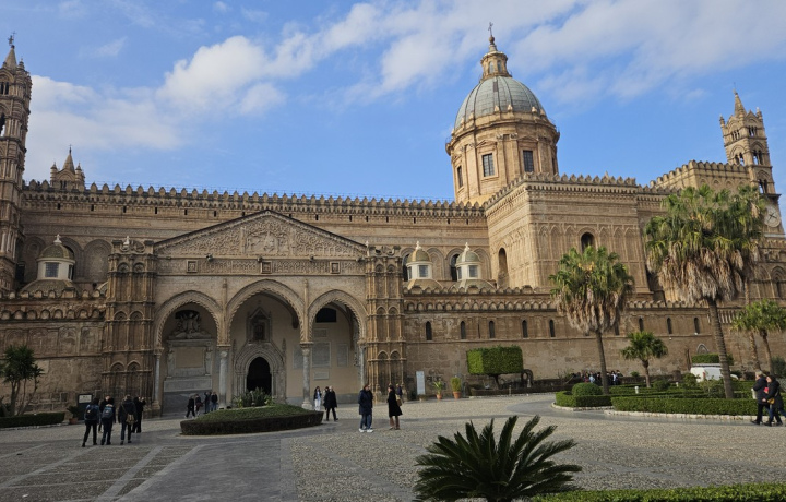 Кафедральный собор Палермо — шедевр средневекового зодчества, плод совместного творчества немецких, испанских и арабских художников и архитекторов. Его полное название — собор Успения Пресвятой Девы Марии. Снаружи и внутри он представляет собой смешение стилей и религий разных эпох. Это объясняется сложной и многогранной историей Сицилии, где в разное время господствовали европейцы и арабы.