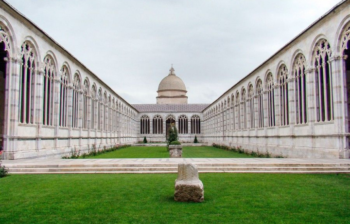 На Монументальном кладбище «Кампосанто» познакомимся коллекцией римских саркофагов и с циклом фресок XIV — XV века, которые после длительных реставрационных работ занимают прежние места. «Страшный суд», «Ад», «Анахореты или жизнь отшельников» написанные грандиозными художниками своего времени, и самая впечатляющая фреска мастера Буффальмако«Триумф Смерти», под впечатлением которой родились новеллы «Декамерона» Бокаччо и “Пляска смерти” композитора Ференца Листа.