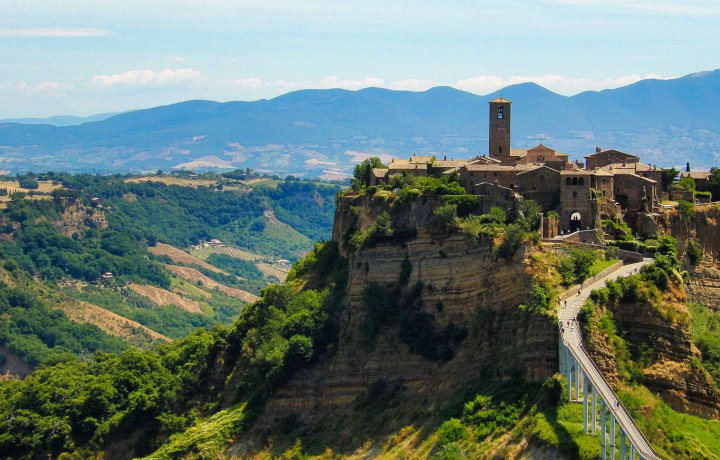 Отправляемся из Рима утром на машине и спустя два часа прибываем на место. Здесь мы покупаем билеты и по подвесному мосту длиной 300 м. попадаем в удивительный город Чивита-ди-Баньореджо. Обойти его можно примерно за час.