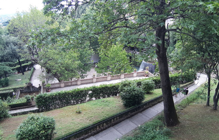 Гуляя по прекрасным комнатам, посетитель наслаждается также шикарными видами на долину Гауденте, на секретный садик, на сад с роскошными фонтанами. И, наконец, он выходит на Большую лоджию, где поражается пейзажем, еще более завораживающим, и спускается на Виалоне. На этой широкой улице, обрамленной с обеих сторон арками, собирались гости кардинала и происходили бесконечные спектакли.