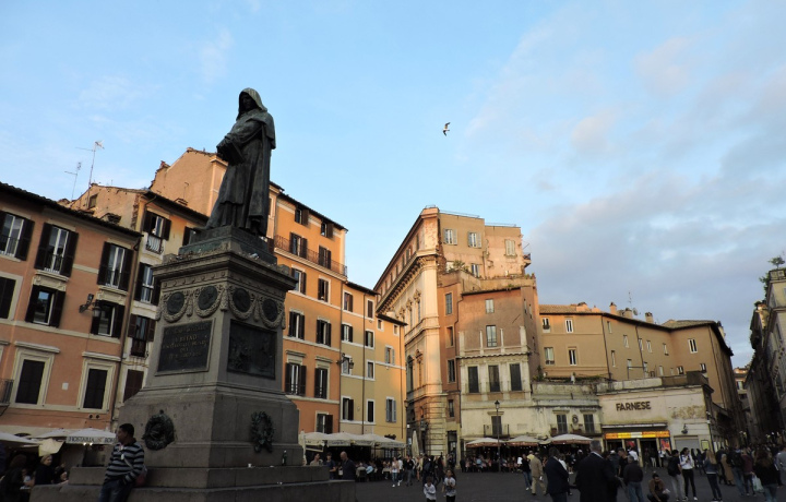 Доберёмся до Campo dei Fiori и узнаем, что не только Джордано Бруно был сожжён здесь за свои взгляды — досталось ещё и еврейским писаниям.