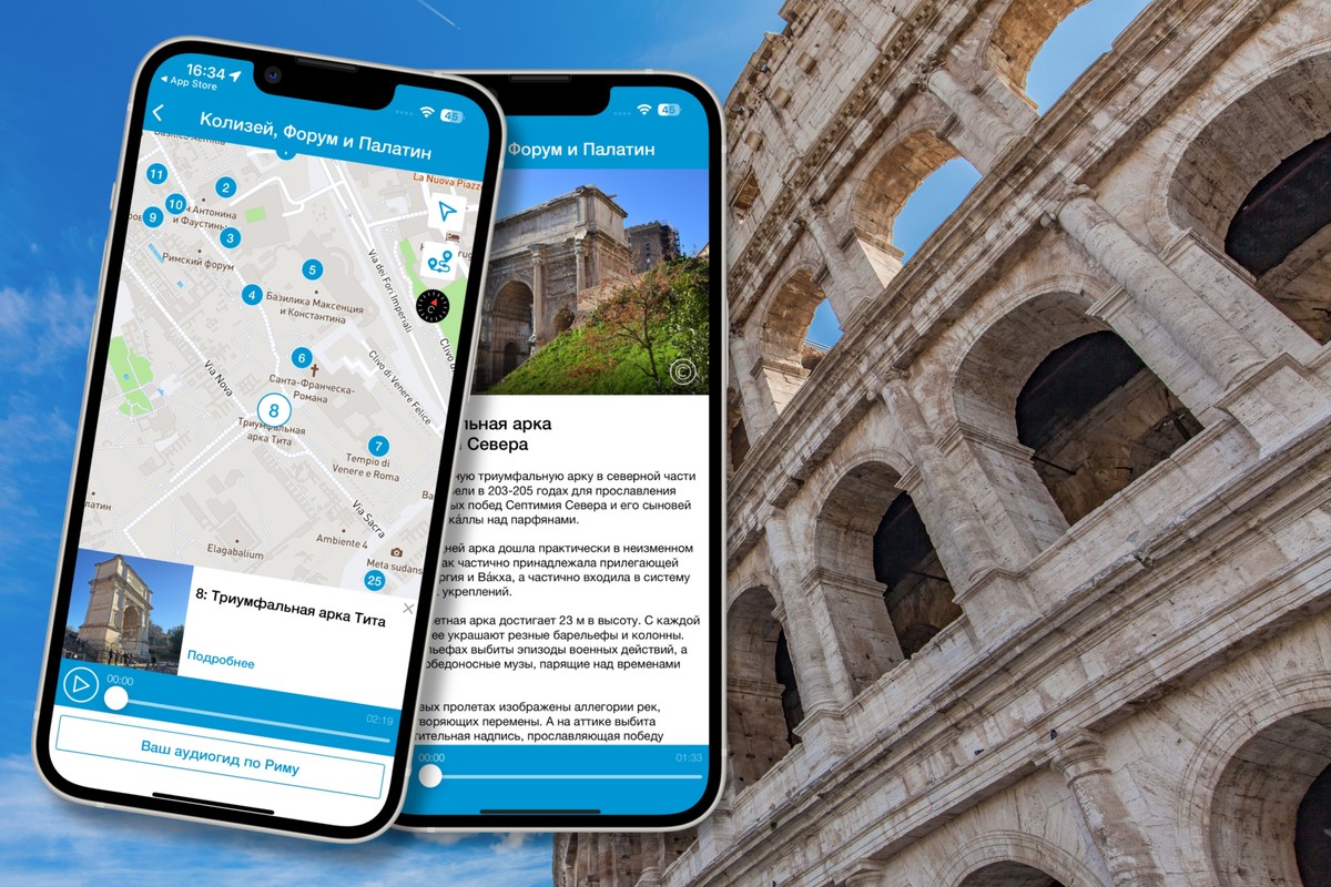 Самые знаменитые достопримечательности Рима расположены компактно — вы легко осмотрите их за один день. Аудиогид в вашем смартфоне превратит прогулку среди руин в путешествие по эпохам: от болота, которое осушили ради первых улиц, до дворца, давшего название всем дворцам мира. Для осмотра древностей, вам нужно будет самостоятельно купить единый билет.