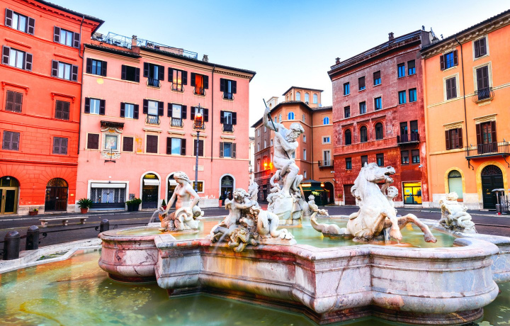 Осмотр главных достопримечательностей Древнего Рима — Колизей (снаружи), Императорские Форумы, Капитолийский холм, площадь Венеции и Викторианский мемориальный комплекс, фонтан Треви, Испанская площадь, Пантеон и жемчужина барокко — площадь Навона.