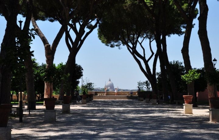 Апельсиновый сад и панорама Рима с высоты