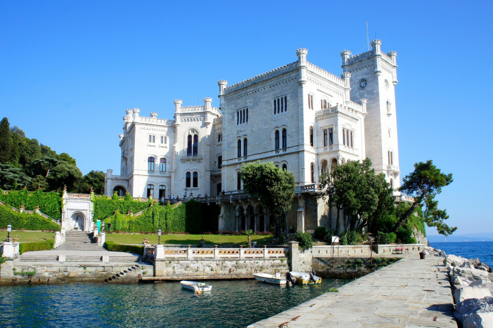 Замок и сад экзотических растений Мирамаре построен в 1856–1860 годах в качестве резиденции австрийского эрцгерцога Максимилиана (будущего императора Мексики) и его супруги Шарлотты. Эклектичная архитектура замка сочетает черты средневекового зодчества, неоготики и ренессанса. Интерьеры не менее прекрасны, чем белокаменные фасады резиденции, стоящей на берегу залива.