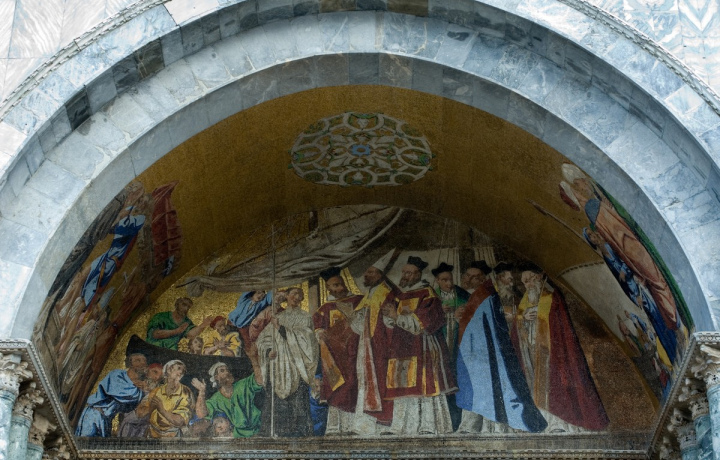 Вы узнаете о религиозной значимости базилики и её роли в культуре Венеции — чтобы попасть в собор, даже самые сильные мира сего преклоняли колени на входе. А также услышите о жизни святого Марка — ради размещения мощей евангелиста в конце 11 века и построили этот удивительный храм.