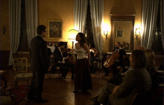 Это дает зрителям возможность прочувствовать оперу изнутри. Такое ощущение достигается благодаря умному круговому использованию сцены и рассадке гостей в трех разных залах дворца. В каждом зале проводится по одному акту представления. Меняется место действия, а не только декорации.