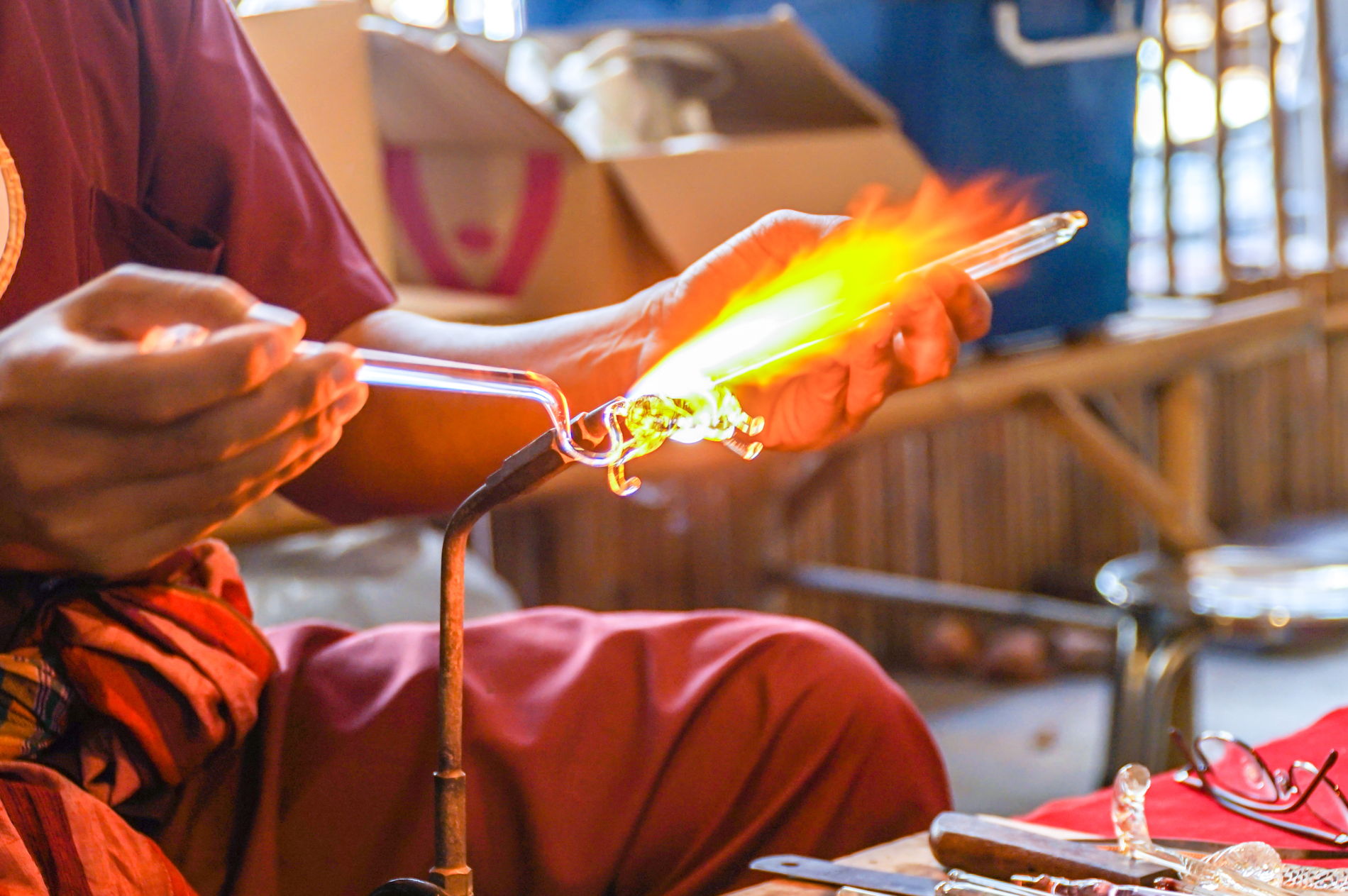 Демонстрация выдувания стекла произвела большое впечатление. Мастер-класс по изготовлению украшений стал отличным дополнением. Гид была тоже очень хорошей.