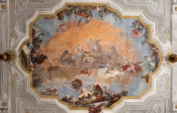 Дворец Ка Реццонико — живое свидетельство беззаботной «сладкой жизни» венецианской аристократии на смене двух эпох. Дольчевита — да, конечно, но с настолько очевидной и нескрываемой, примешанной к ней долей грусти и иронии, что эта ностальгическая нота звучит во всех интерьерах этого феерического дворца. Это мотив ожидаемого конца. Здесь главный изобразительный герой уже не героический Геракл эпохи Возрождения, а маленький-кривой-горбатый Пульчинелла (горбун-канатоходец, герой комедии дель Арте). Золотые времена венецианской республики давно прошли, и гераклы уступили место карикатуре — карлику, паяцу. Смейся, Паяц! Улыбнемся и мы.
