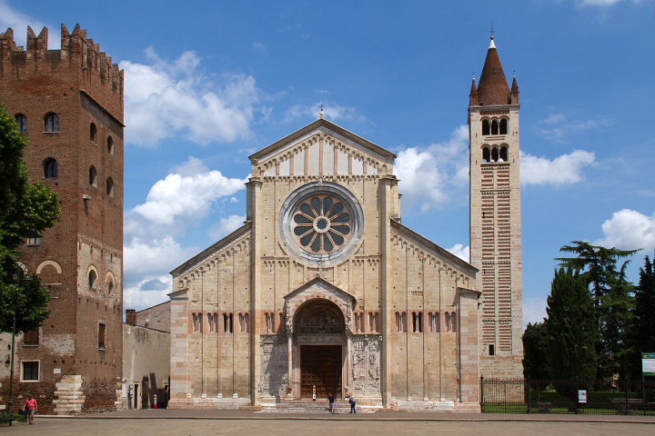 Трёхнефная романская базилика на площади Сан-Дзено построена в X столетии. Первая скромная церквушка на этом месте возводилась пятью веками ранее — здесь находилось захоронение первого веронского епископа. Позднее останки Зенона Веронского были перенесены в крипту следующего церковного здания. Нынешняя базилика Сан-Дзено-Маджоре стала третьей по счёту церковью.