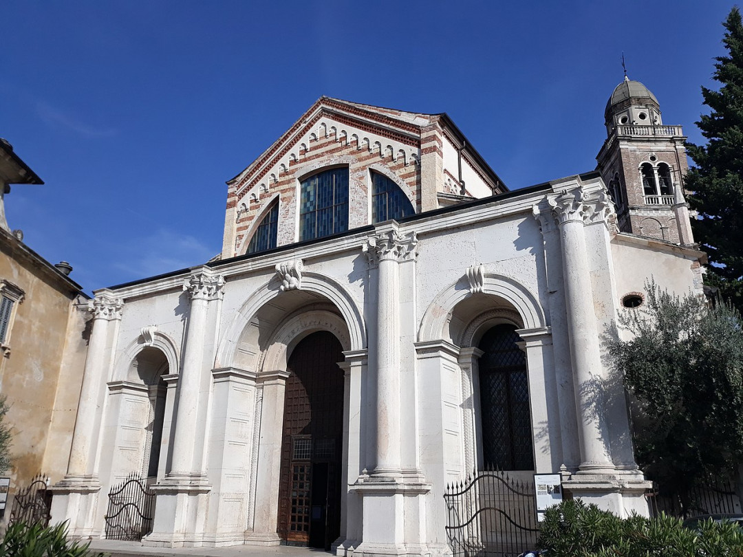 Католический собор в романском стиле возведён в Вероне в XII веке. Несколькими веками позднее сооружение перестраивалось в готическом стиле — с узкими вытянутыми окошками и остроконечными башенками. В первоначальном исполнении осталось только оформление входа. Портал украшен скульптурными барельефами на ветхозаветные темы.