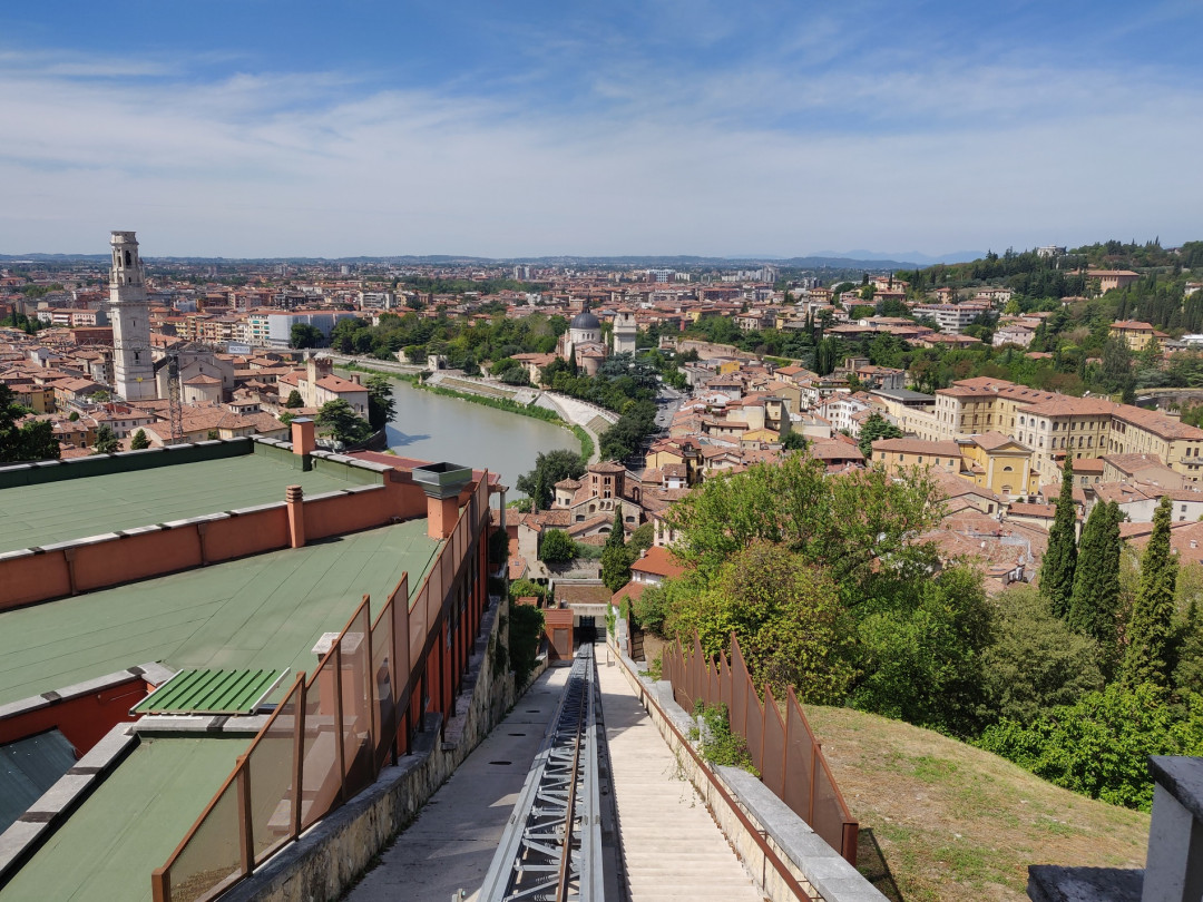 Пропускная способность Веронского фуникулёра — 600 пассажиров в час. Одна кабина рассчитана на 25 человек, поездка занимает всего 2-3 минуты. Промежуточная остановка у Римского театра позволяет познакомиться со всеми достопримечательностями холма Святого Петра. Конечная станция — смотровая площадка, откуда открываются панорамные виды Вероны.
