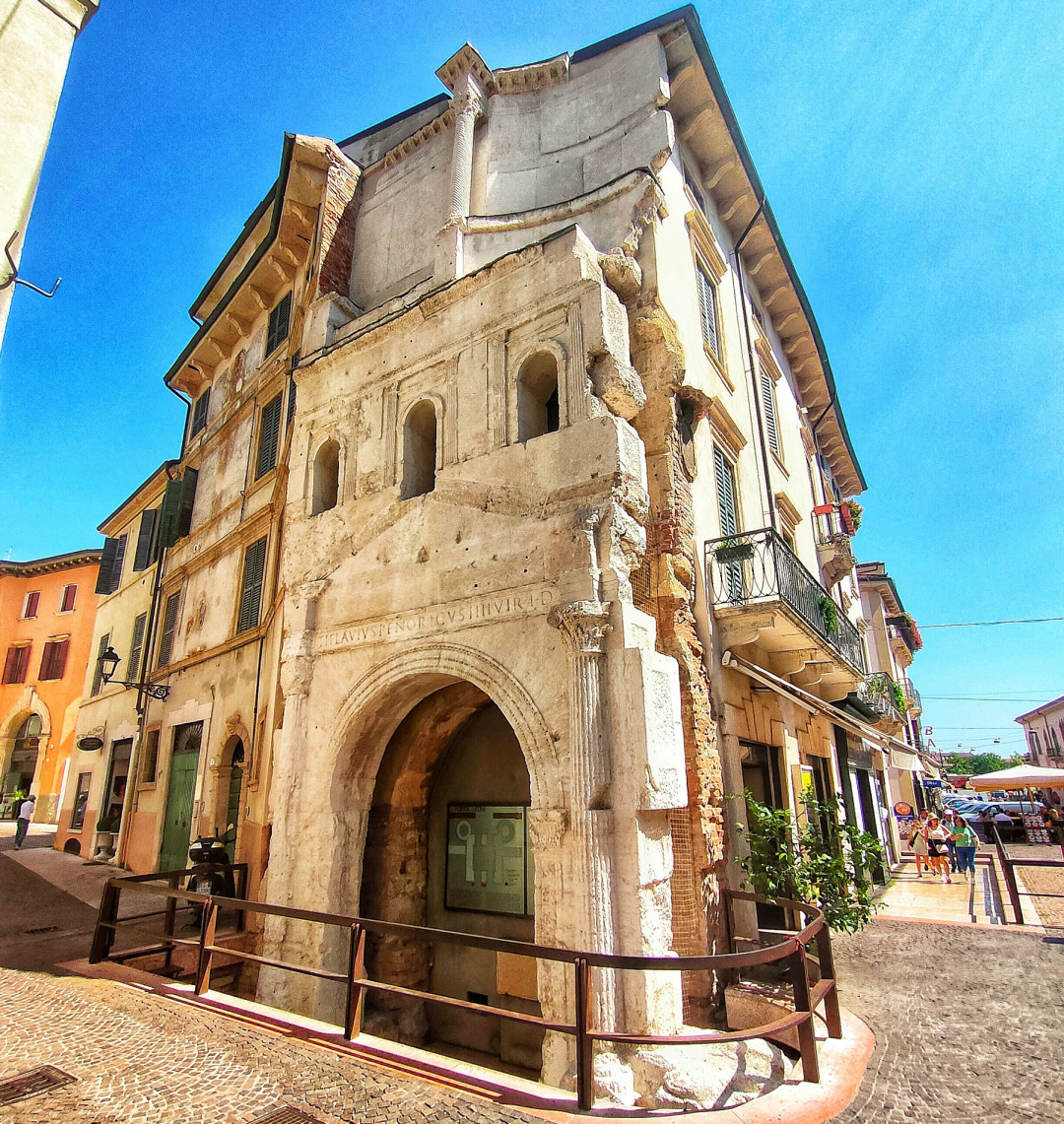 Античная однопролётная арка с колоннами построена в Вероне в I веке нашей эры. Сооружение возводилось в честь знатной веронской семьи за её заслуги перед городом. На арке в двух местах можно увидеть имя и подпись архитектора, по проекту которого она строилась.
