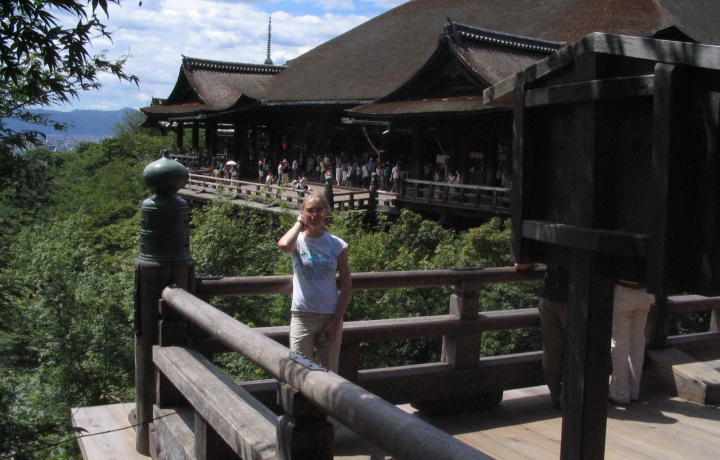 Затем мы направимся в храмовый комплекс Киёмидзу-дэра, который известен своей деревянной террасой, уникальным сооружением, построенным без единого гвоздя. Если вы фанат фильмов о Японии, то здесь вы сможет сделать такие же фотографии, как и герои фильма Васаби.