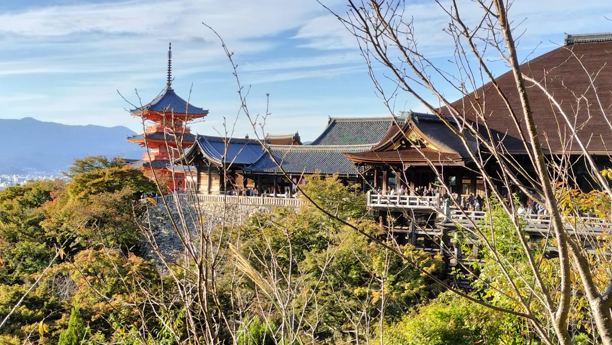 Храм Чистой воды Киёмидзу-дэра (90 мин): вы подниметесь на знаменитую террасу над склоном горы. Мы поговорим о секретах буддизма, легендах «прыжка со сцены» и целебном источнике, дарующем здоровье и мудрость.